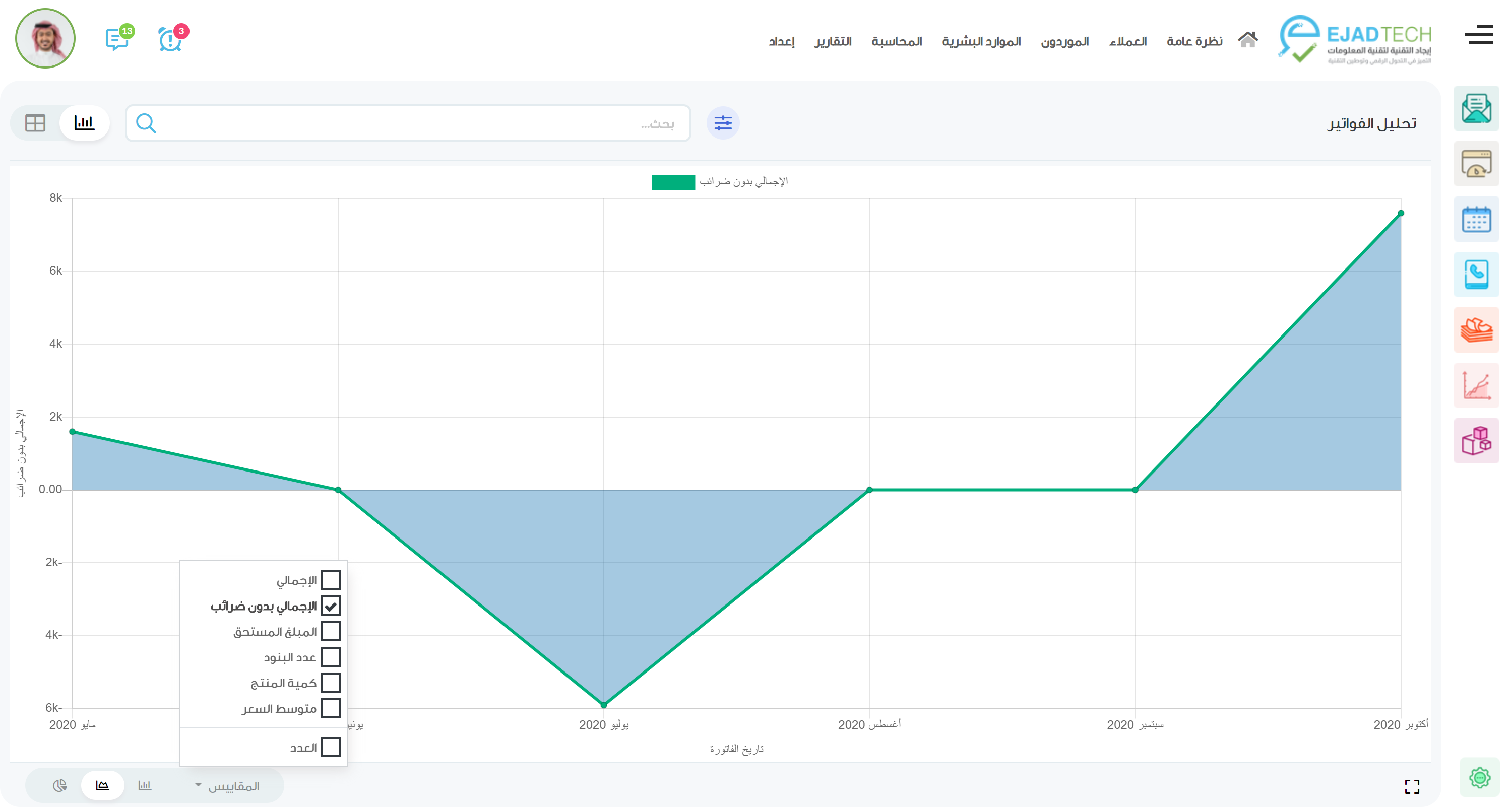 طالع بيانات ذات مدلولات هامة للحصول على صورة كبيرة واضحة.اطلع على المعلومات الرئيسية مباشرة من خلال لوحات البيانات التفاعلية والمخصصة. ضع التعريف الخاص بك وحلل فواتيرك حسب المنتج أو العميل أو مندوب المبيعات وغيرها.