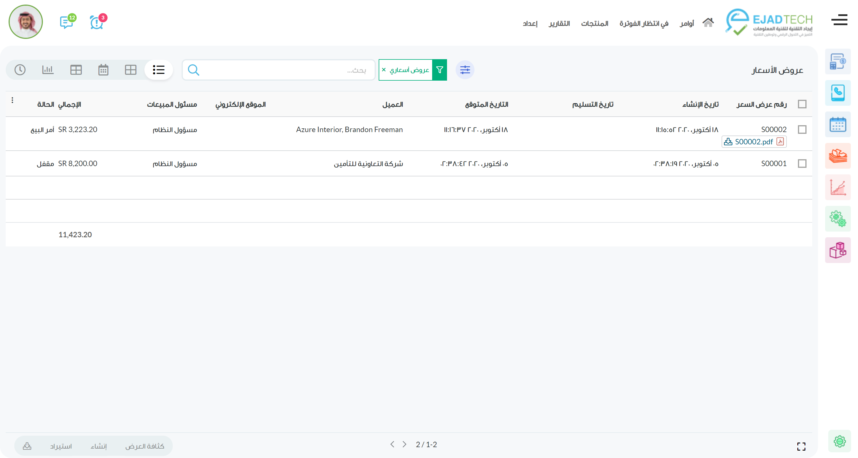 من خلال نظام المبيعات يمكنك عمل عروض الاسعار بسهولة وإكمال الإجراءات مع العملاء بسرعه